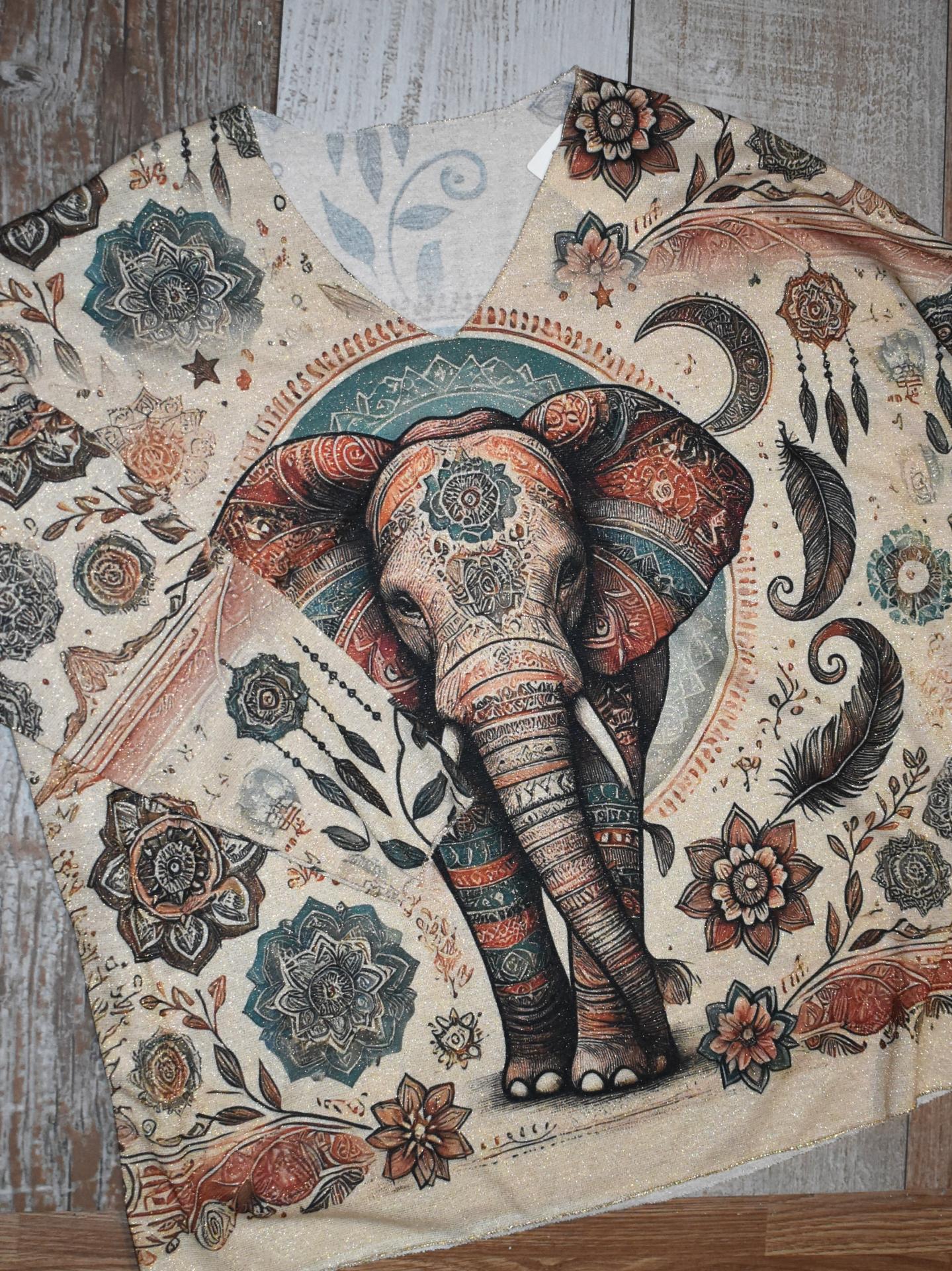 Un diseño que combina ligereza y elegancia: tejido muy fino, escote en pico favorecedor y delicados toques dorados. Dos modelos llamativos (elefante y animal print) que se adaptan a tu estilo, sin perder comodidad ni forma.
