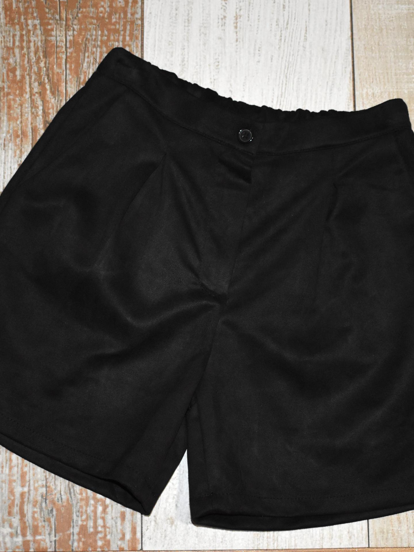 Pantalón corto de antelina con mezcla de elegancia y comodidad: cierre de botón + cremallera, cintura parcialmente elástica, disponible en camel y negro. Perfecto para aportar textura a tu estilo.