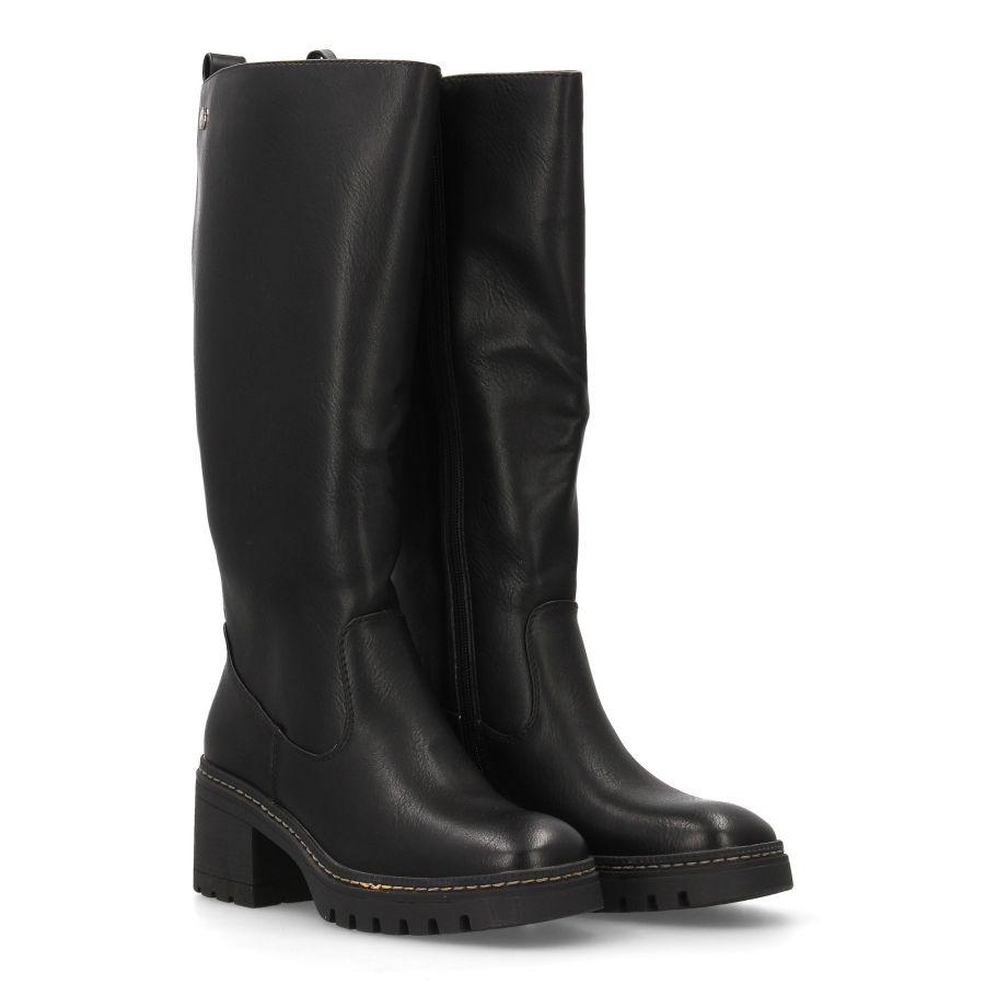 Bota alta color marrón con tacón grueso y suela robusta. Diseño elegante y funcional ideal para el otoño e invierno.