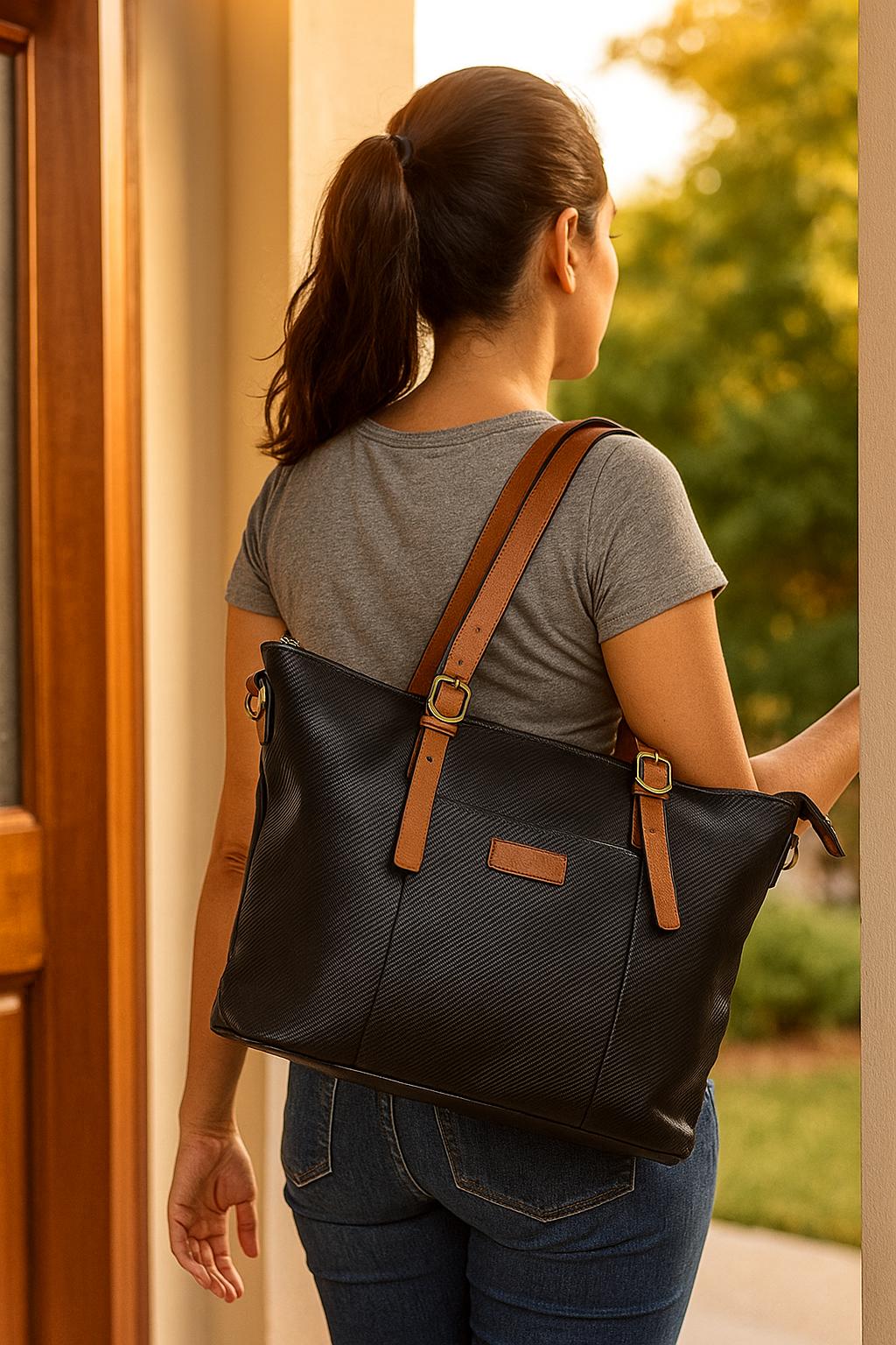 Un bolso pensado para acompañarte a todas partes. Diseño amplio, elegante y cómodo, con doble asa —una fija y otra de tela ajustable y extraíble— para adaptarse a tu ritmo. Disponible en dos tonos atemporales: negro y camel.