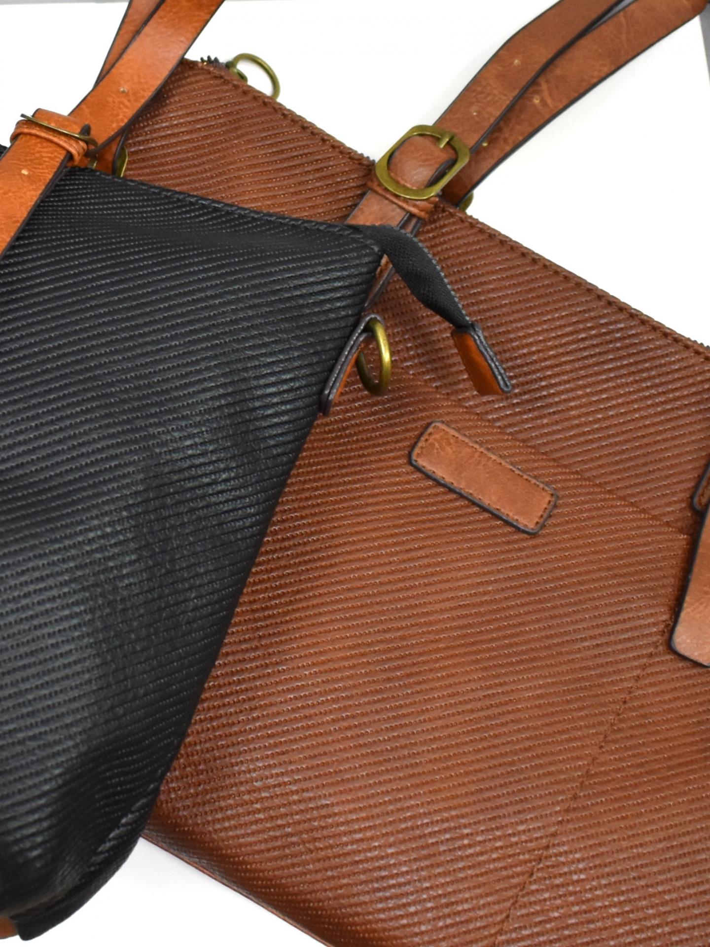 Bolso de asa fija y correa extraíble en polipiel – negro y camel