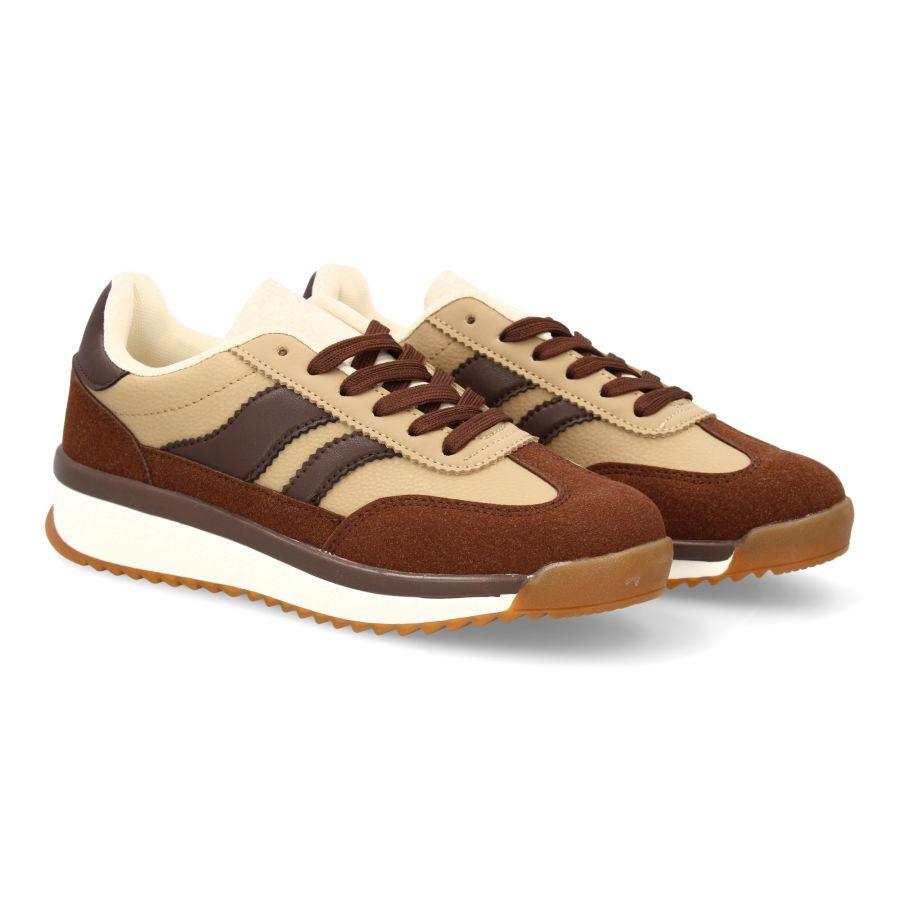 Zapatillas Deportivas Mujer Retro Comfort – Colores Beige Burdeos y Marrón Beige