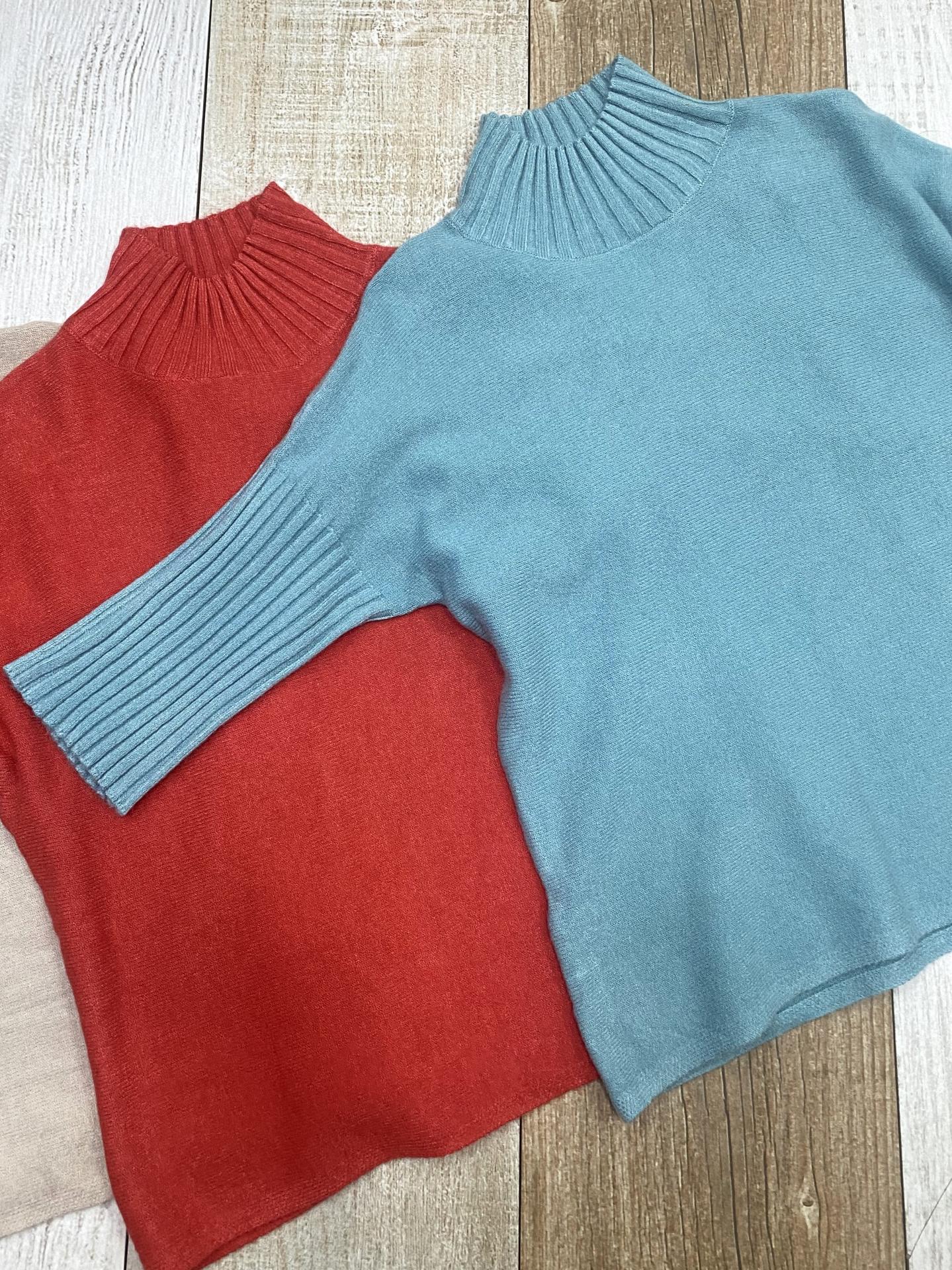 Jersey de punto mujer cuello alto – manga media y tacto suave
