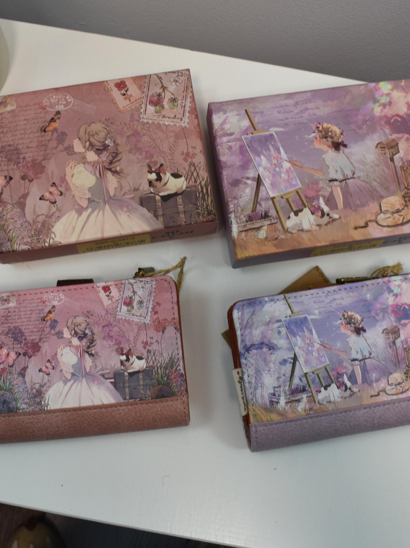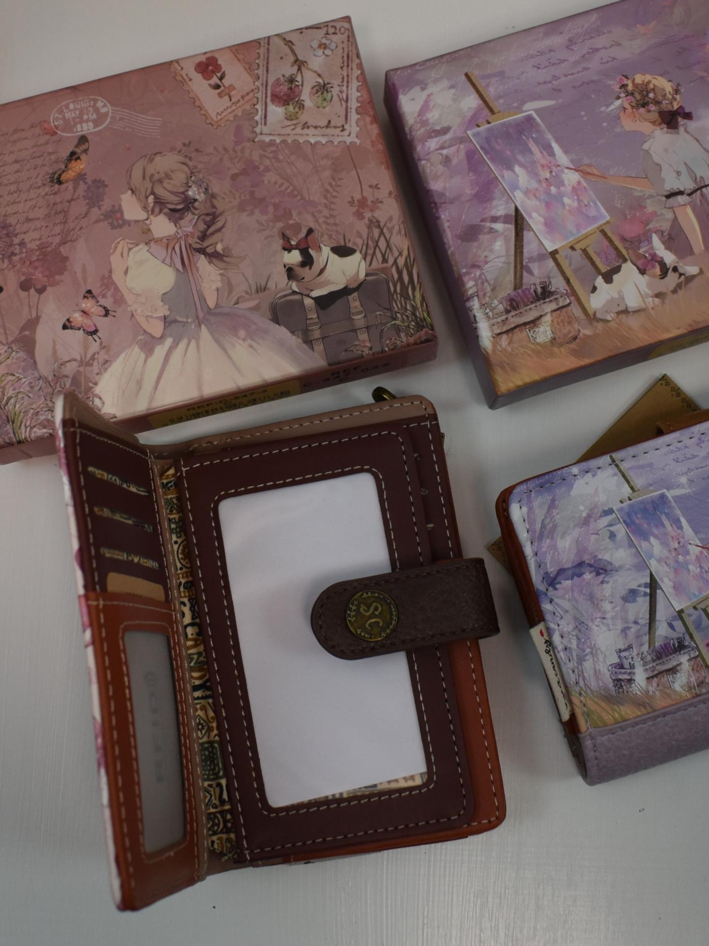 Diseñado con espacio para monedas, billetes y tarjetas, combina una estética dulce con una organización impecable.
