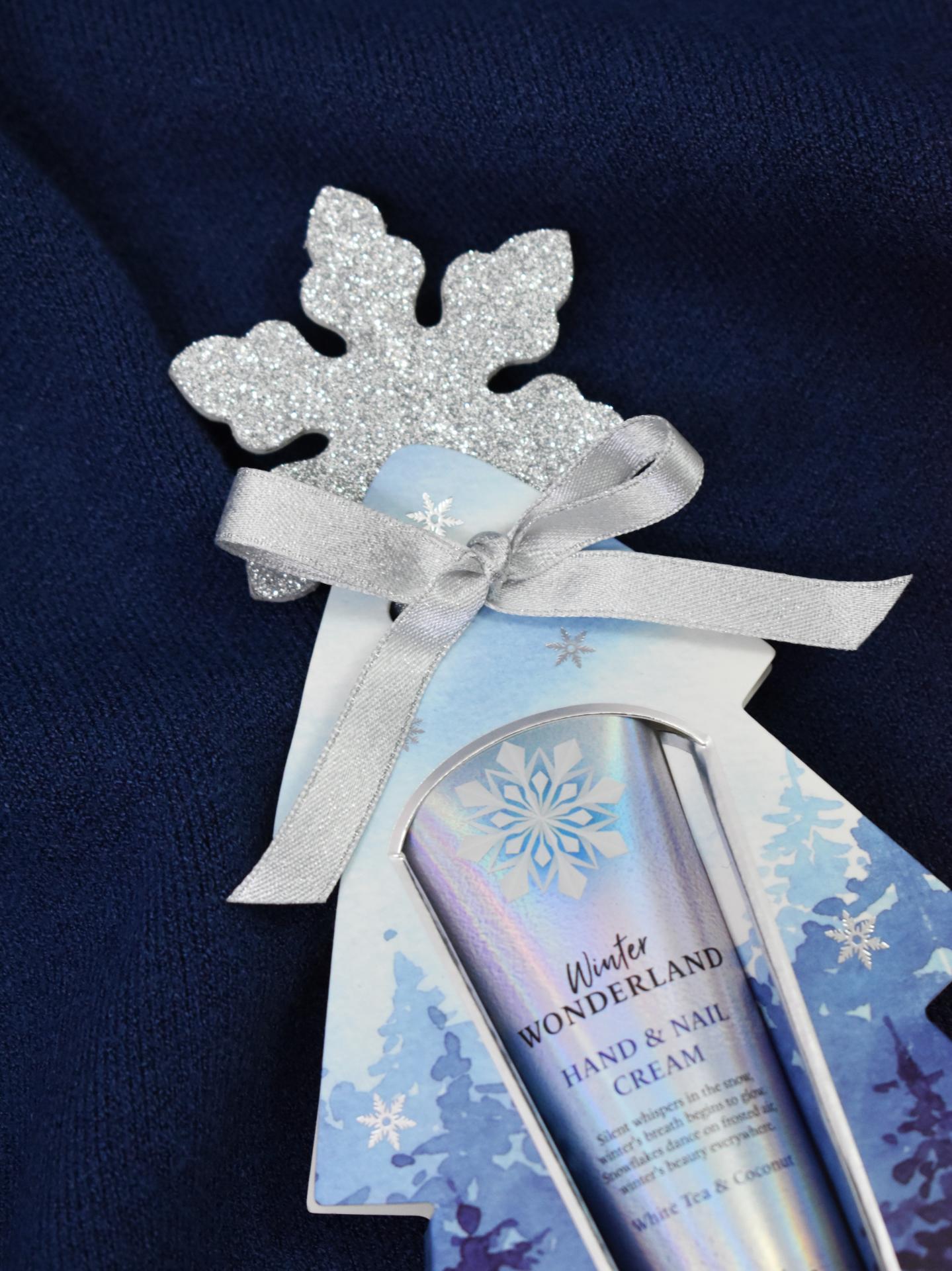 Pack Winter Wonderland de Accentra, con crema de manos y lima de uñas en forma de copo de nieve, aroma a té blanco y coco. Vegano, sin parabenos ni aceites minerales. Ideal para regalar esta Navidad.