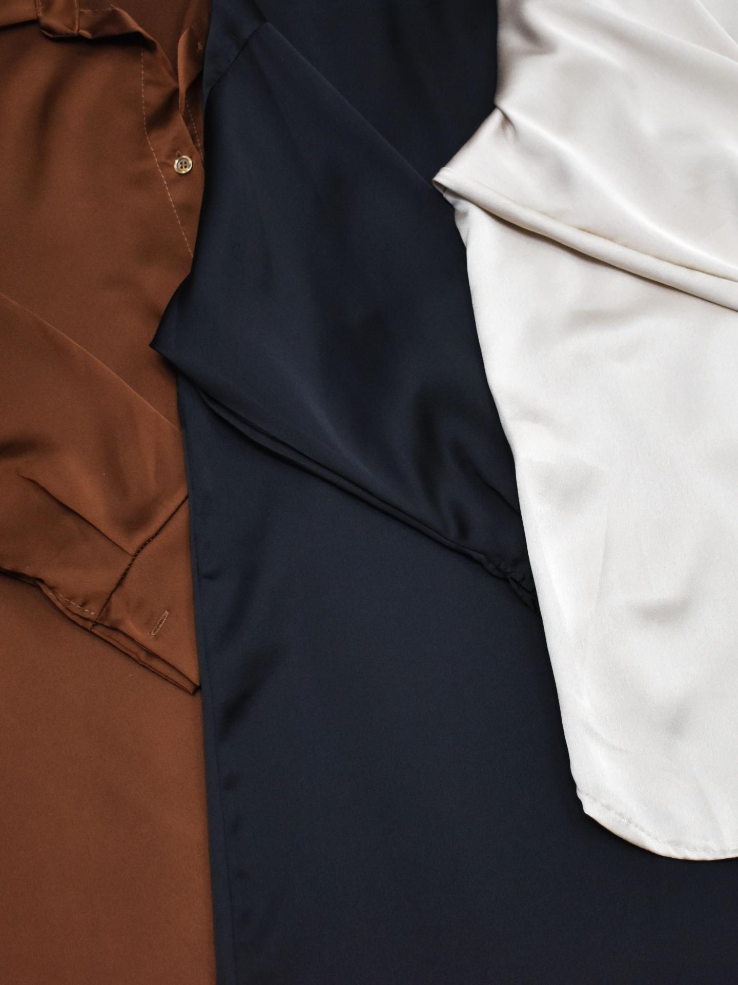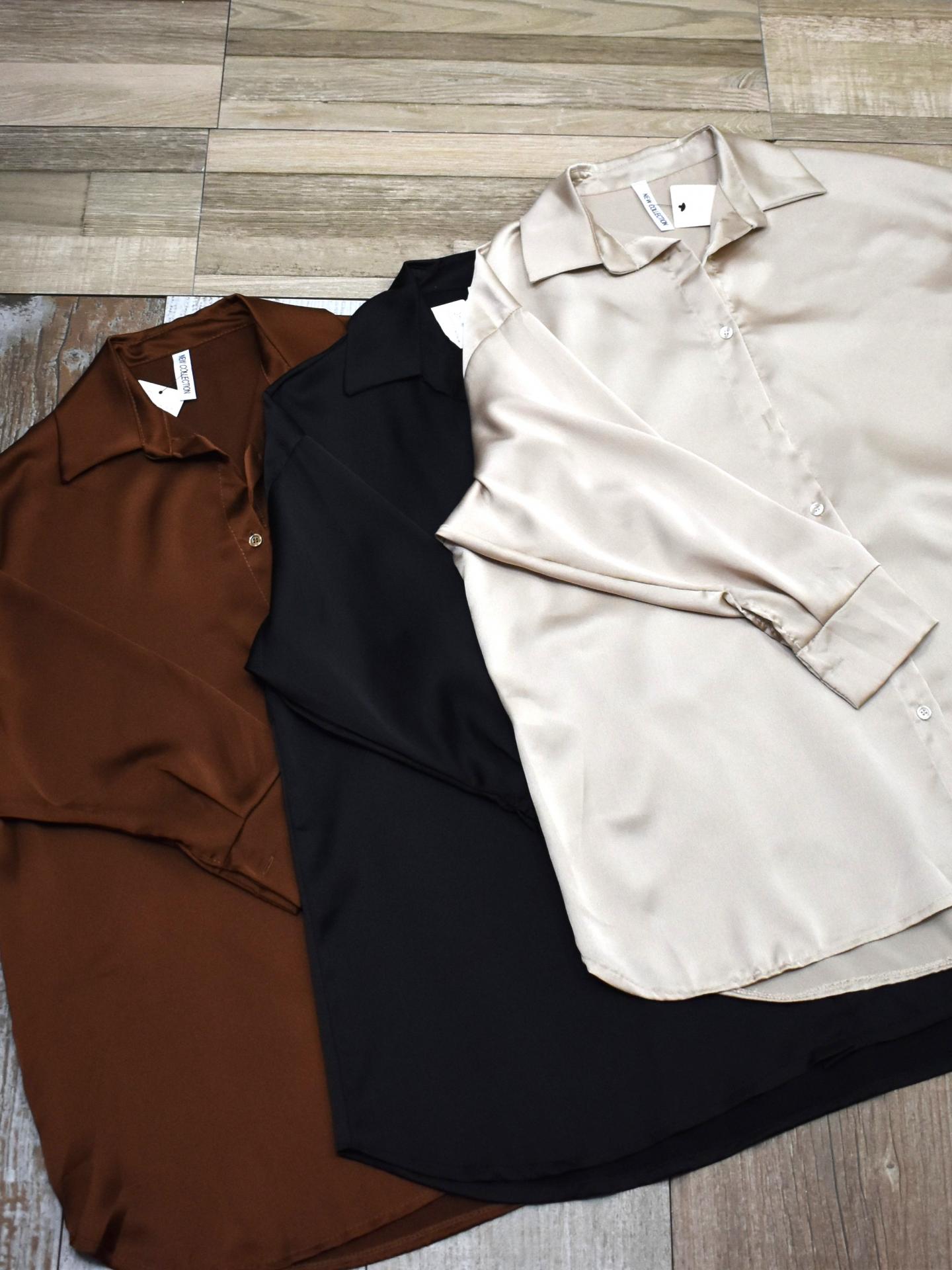 Camisa de raso con manga larga diseñada especialmente para tallas curvy. Su textura satinada aporta un toque elegante y femenino, ideal para cualquier ocasión. Disponible en buganvilla, marrón, negro y beige.