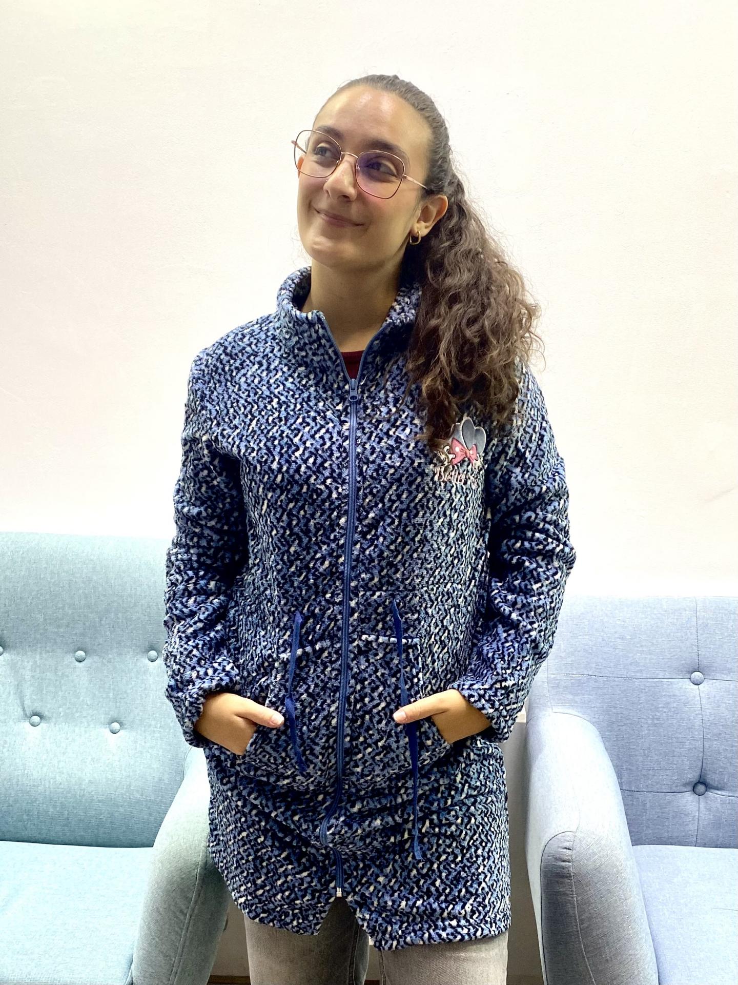 Una bata cálida, práctica y perfecta para disfrutar del confort diario. Su diseño con cremallera y dos bolsillos laterales la hace ideal para moverte con libertad por casa sin renunciar al estilo. Disponible en tres colores: azul, rosa y beige.