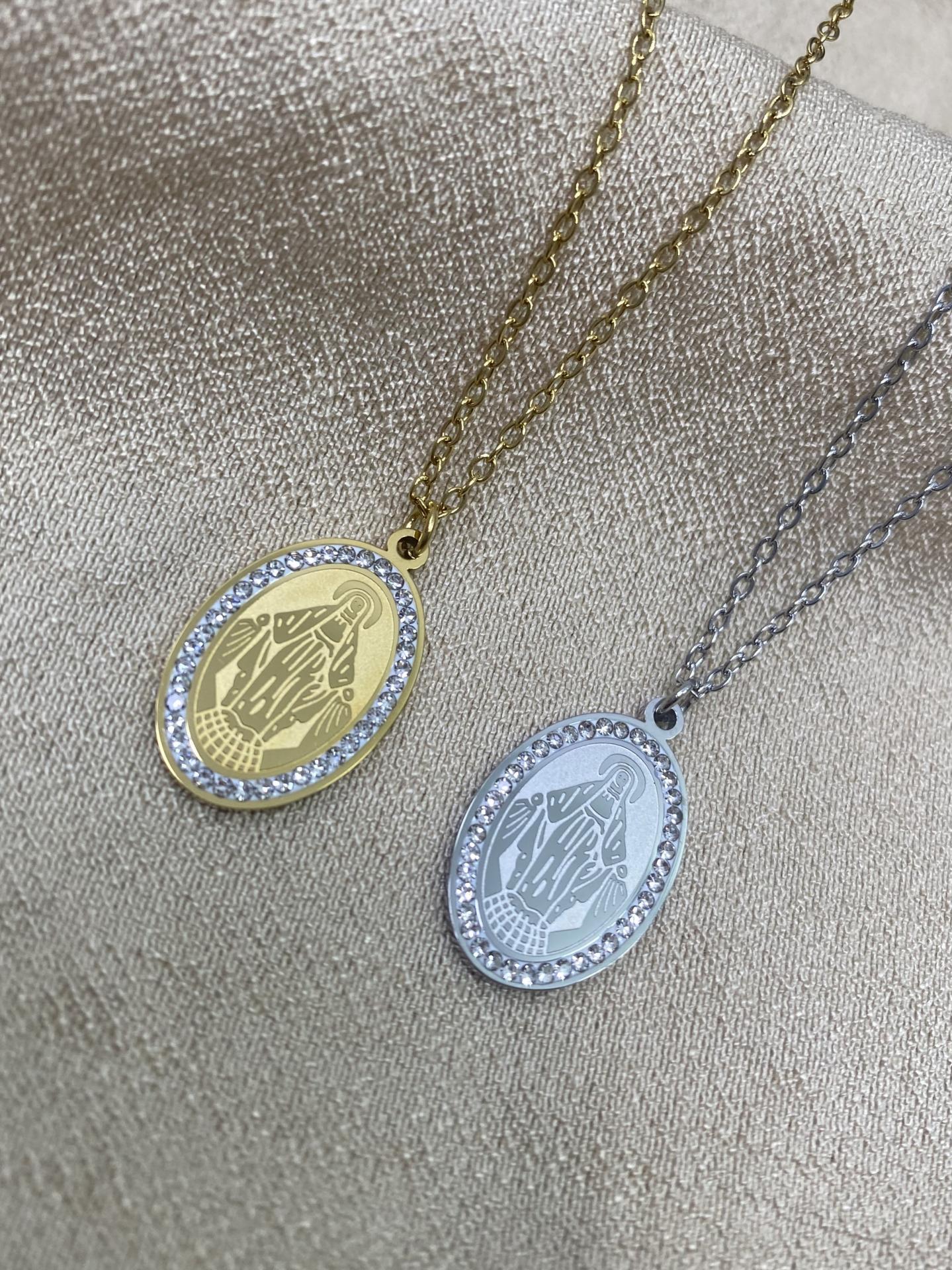 Collar de acero con colgante de la Virgen – cadena ajustable