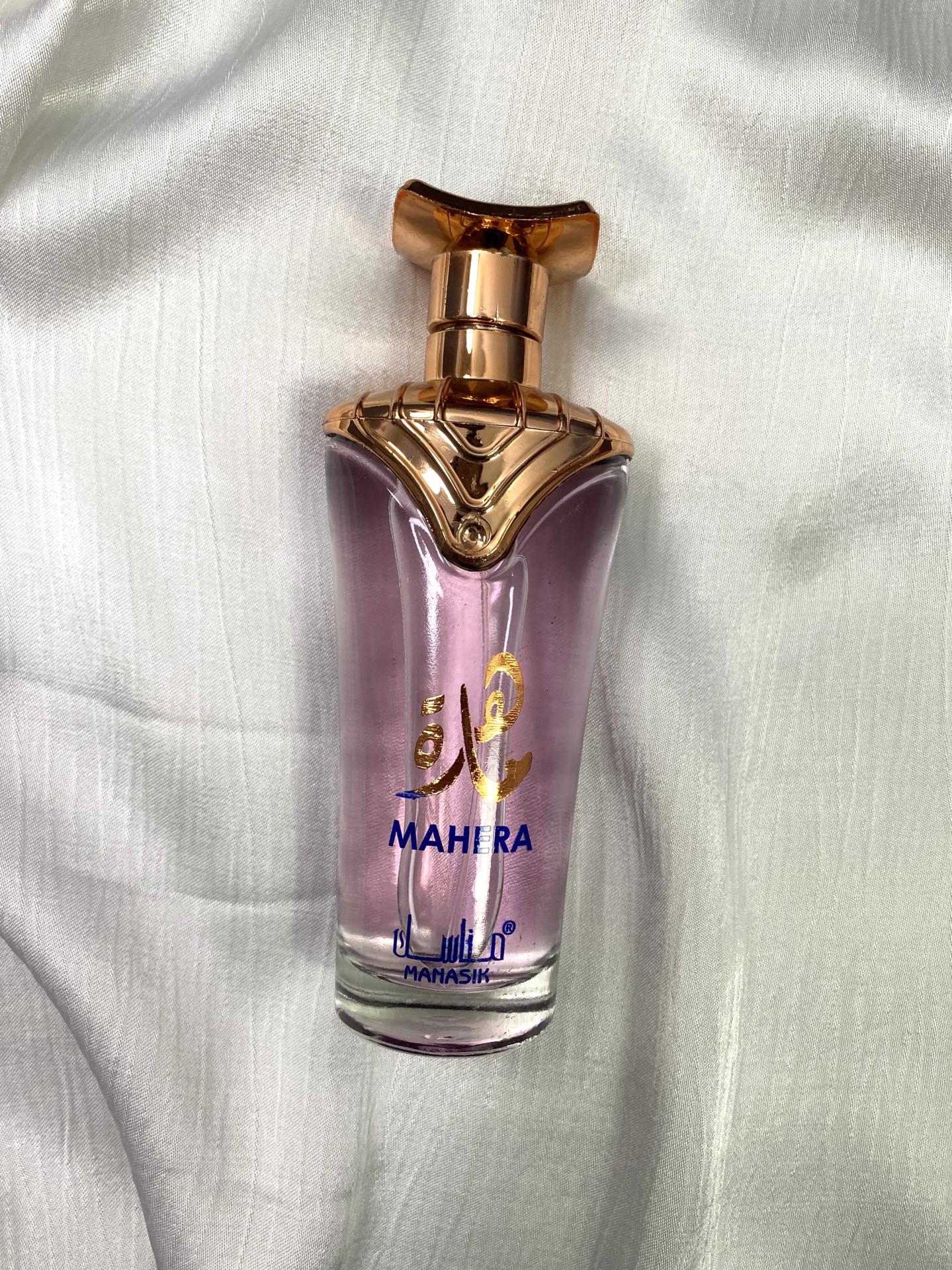 El perfume árabe Mahera es una fragancia femenina que combina a la perfección notas florales delicadas con un fondo amaderado cálido, creando un aroma sofisticado y equilibrado.