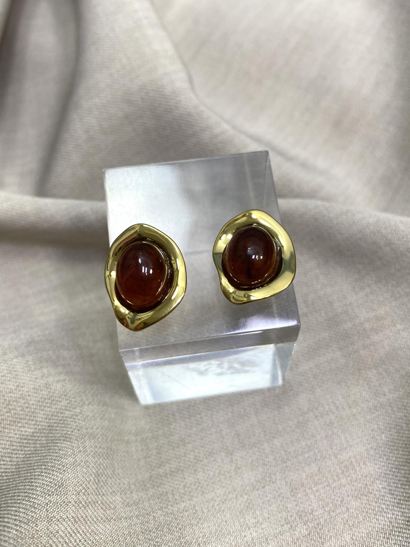 Pendientes de cierre de tuerca en acero dorado con piedra ámbar.
