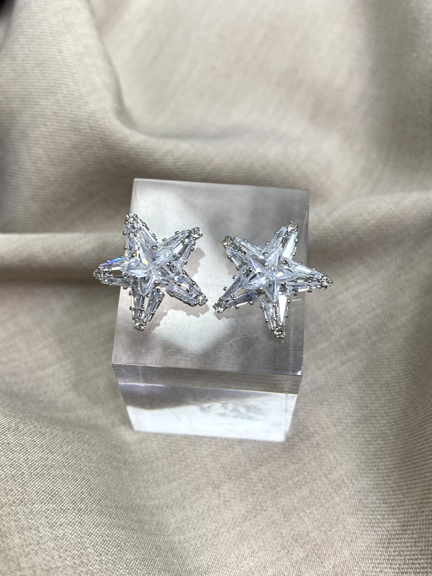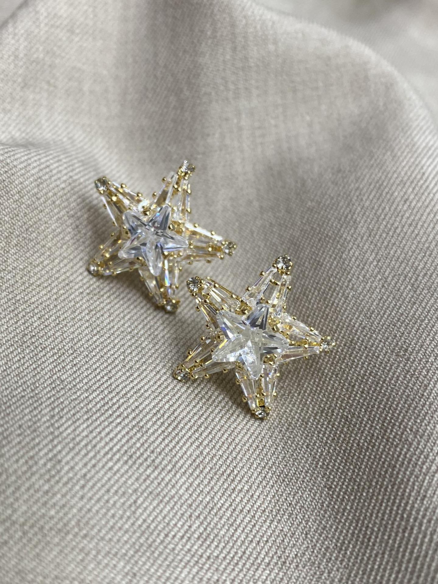 Estos pendientes con forma de estrella destacan por su diseño luminoso y sofisticado, decorados con brillantes de corte geométrico que reflejan la luz con cada movimiento. Un diseño elegante, moderno y llamativo, perfecto para elevar cualquier look.