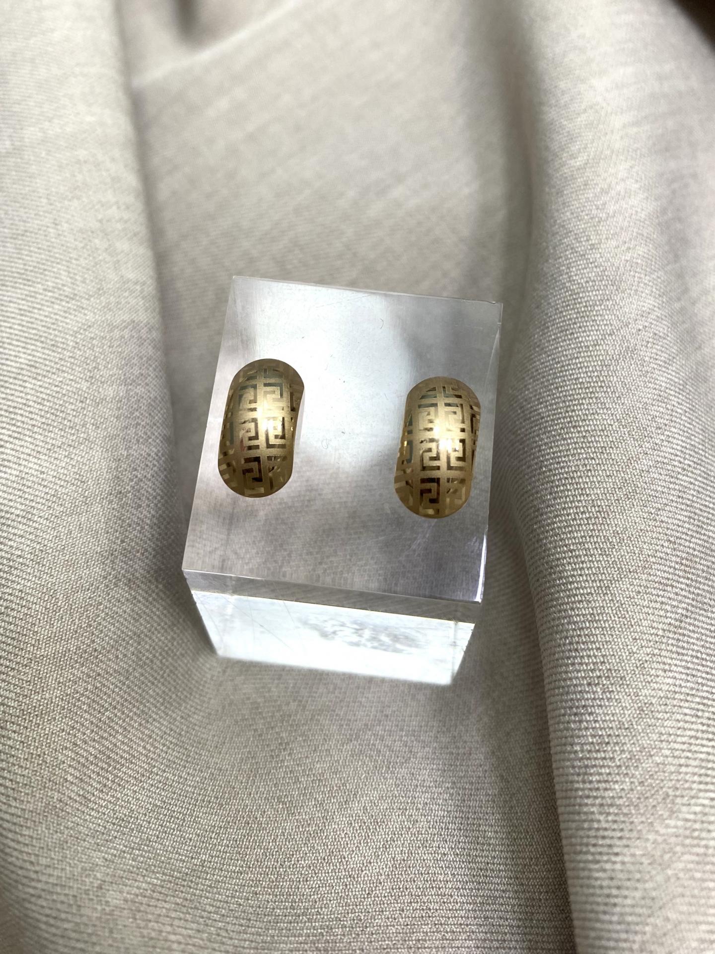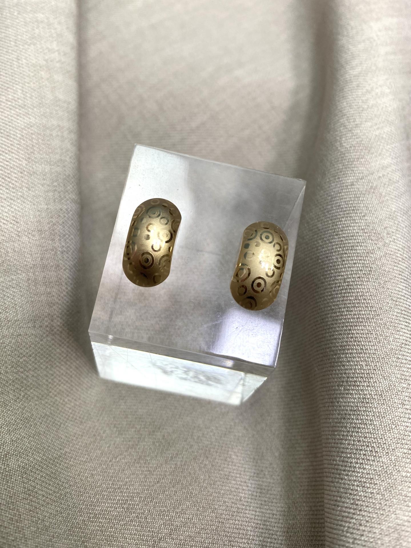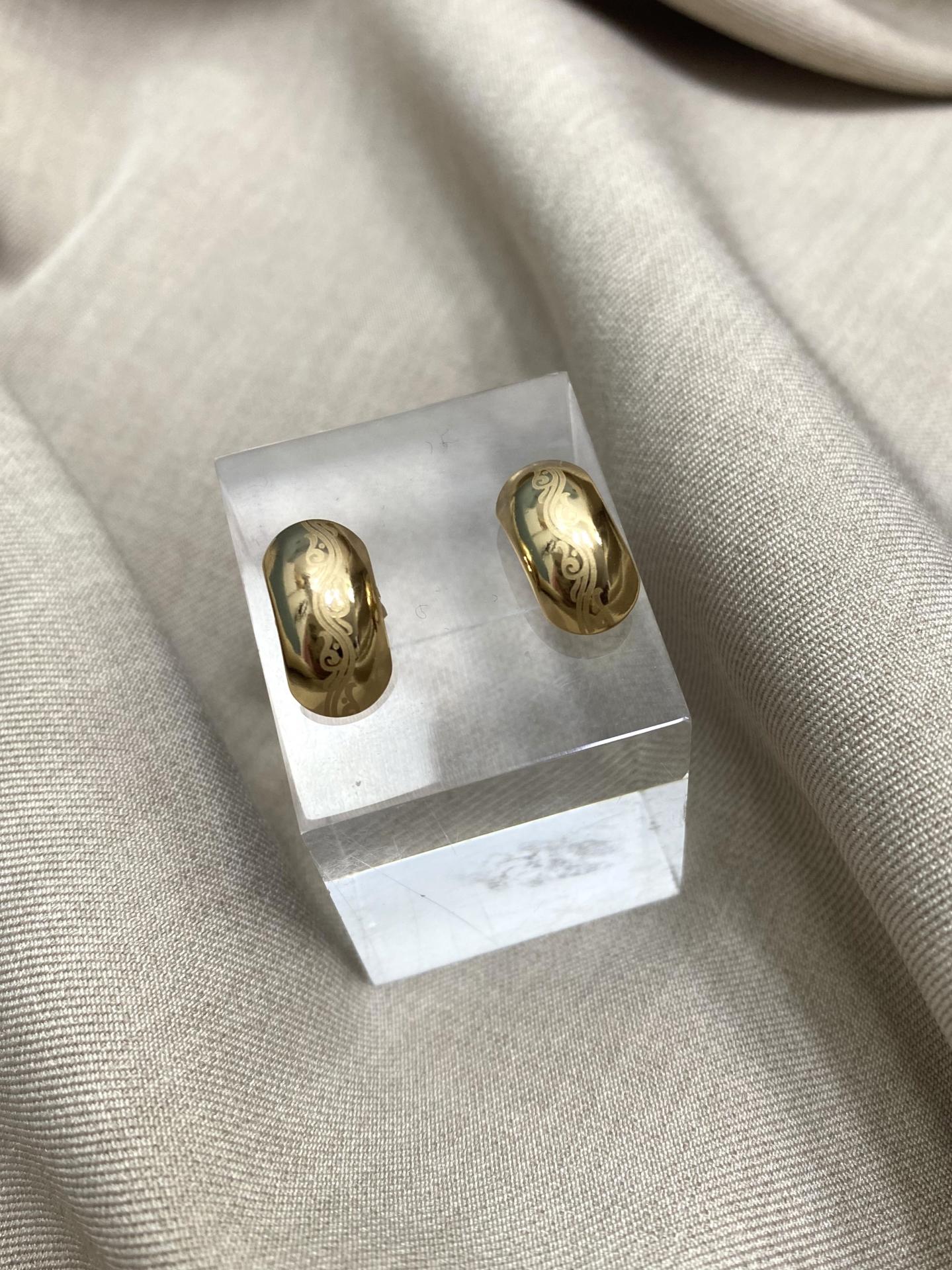 Pendientes de cierre de tuerca en acero dorado, con diseño curvado y detalle central. Un modelo moderno, elegante y sofisticado.