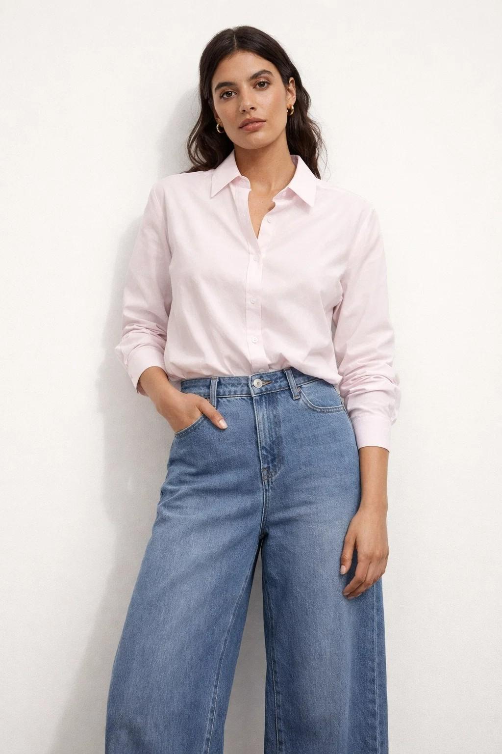 Diseñada para adaptarse al cuerpo sin marcar en exceso, esta camisa de algodón para mujer combina comodidad, elegancia y versatilidad en una sola prenda. Su corte ligeramente entallado realza la silueta de forma natural, aportando un acabado pulido tanto para looks formales como para outfits más casual.