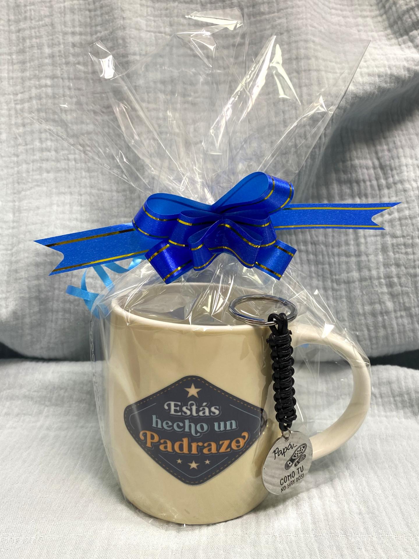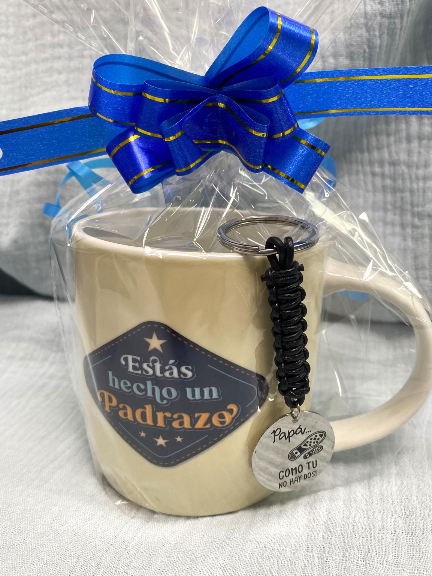 Incluye una taza con el mensaje “Estás hecho un Padrazo”, perfecta para recordarle cada mañana lo especial que es. Además, viene presentada en envoltorio listo para regalo con lazo decorativo y un detalle extra en forma de llavero con mensaje dedicado a papá. Porque los mejores regalos no son los más caros, sino los que transmiten cariño.