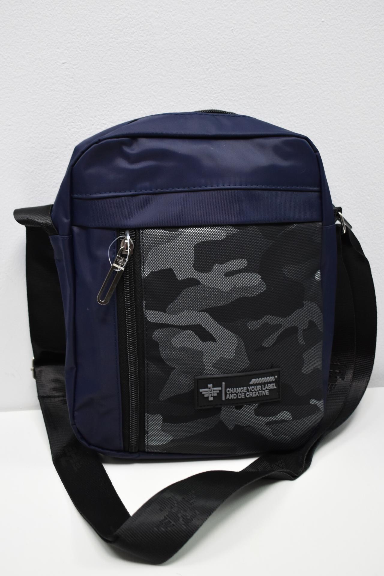 Bolso bandolera estilo urbano con diseño camuflaje. Disponible en verde, azul y negro. Compacto, práctico y moderno.