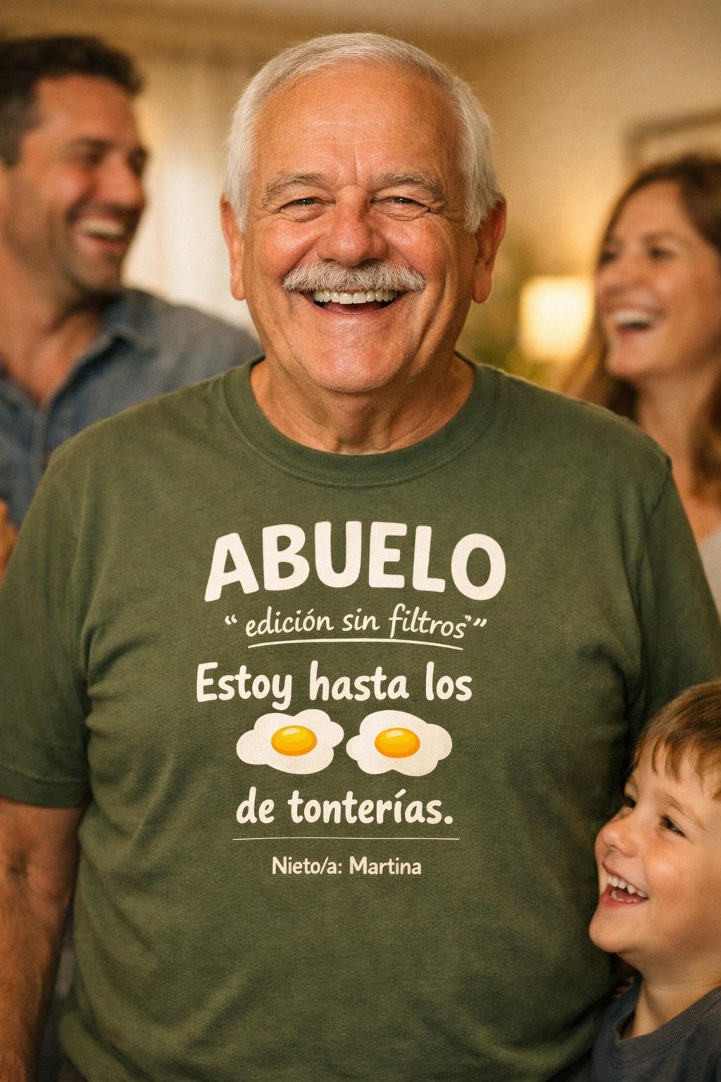 Camiseta divertida “Abuelo edición sin filtros”, un regalo original para abuelo perfecto para sorprender con humor y cariño. Ideal como camiseta divertida para abuelos, con opción de personalizar con el nombre del nieto o nieta.