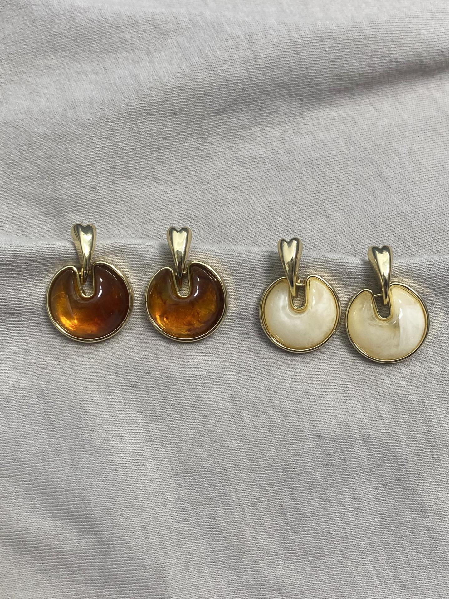 Modernos pendientes de acero con resina, con cierre de tuerca y disponibles en dos colores. Un diseño elegante y actual perfecto para cualquier ocasión.