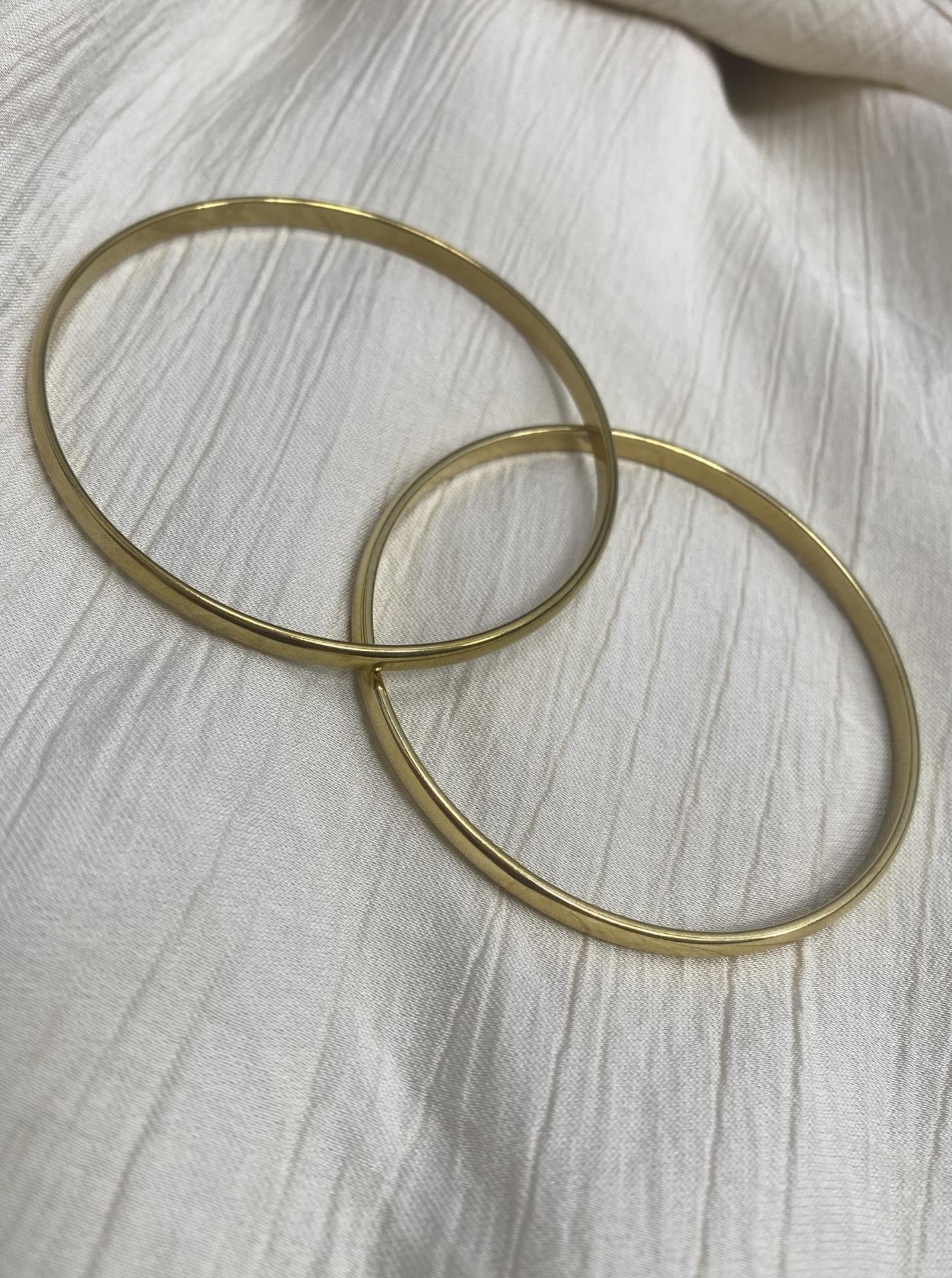 Elegante pulsera rígida de acero inoxidable dorado, con diseño minimalista y moderno. Un accesorio versátil y atemporal perfecto para cualquier ocasión.