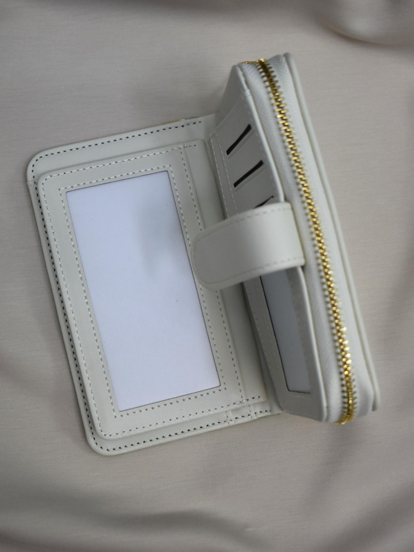 Su diseño espacioso permite llevar todo perfectamente ordenado gracias a sus múltiples compartimentos. Incluye espacio para tarjetas, billetes y fotografías, además de un práctico bolsillo con cremallera para monedas, ideal para mantener todo seguro y accesible.
