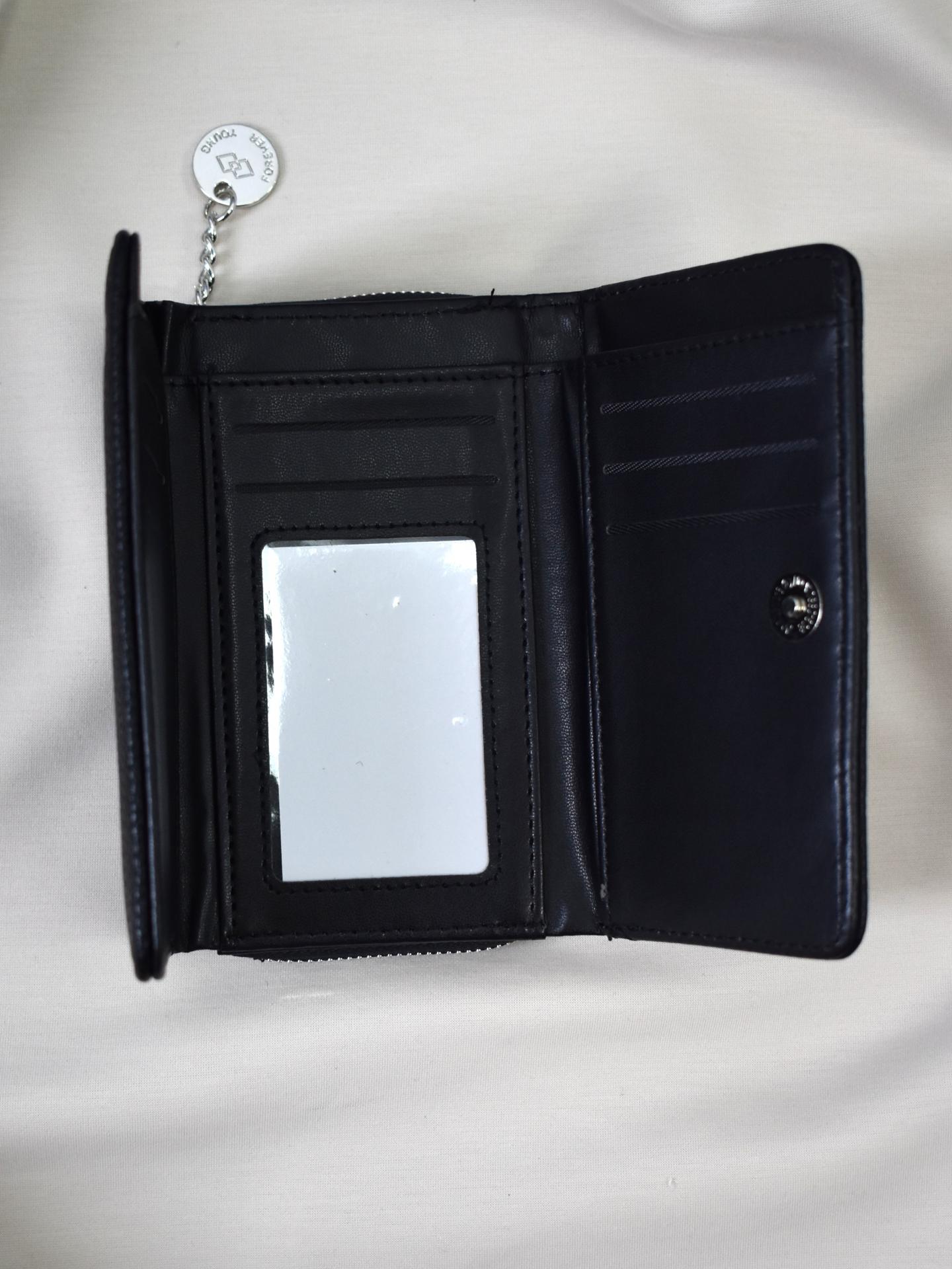 Este monedero destaca por su gran capacidad interior, permitiendo organizar cómodamente tarjetas, billetes y monedas. Incluye múltiples compartimentos bien distribuidos, además de un bolsillo con cremallera que garantiza la seguridad de tus monedas y pequeños objetos.