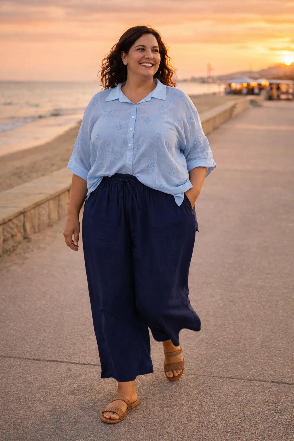 El pantalón ancho curvy con cintura elástica es la prenda imprescindible para quienes buscan comodidad sin renunciar al estilo. Diseñado con un corte amplio y fluido, este pantalón se adapta perfectamente a tu silueta, proporcionando libertad de movimiento y un ajuste favorecedor.