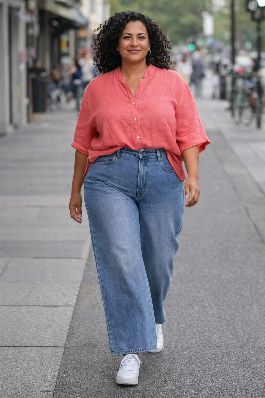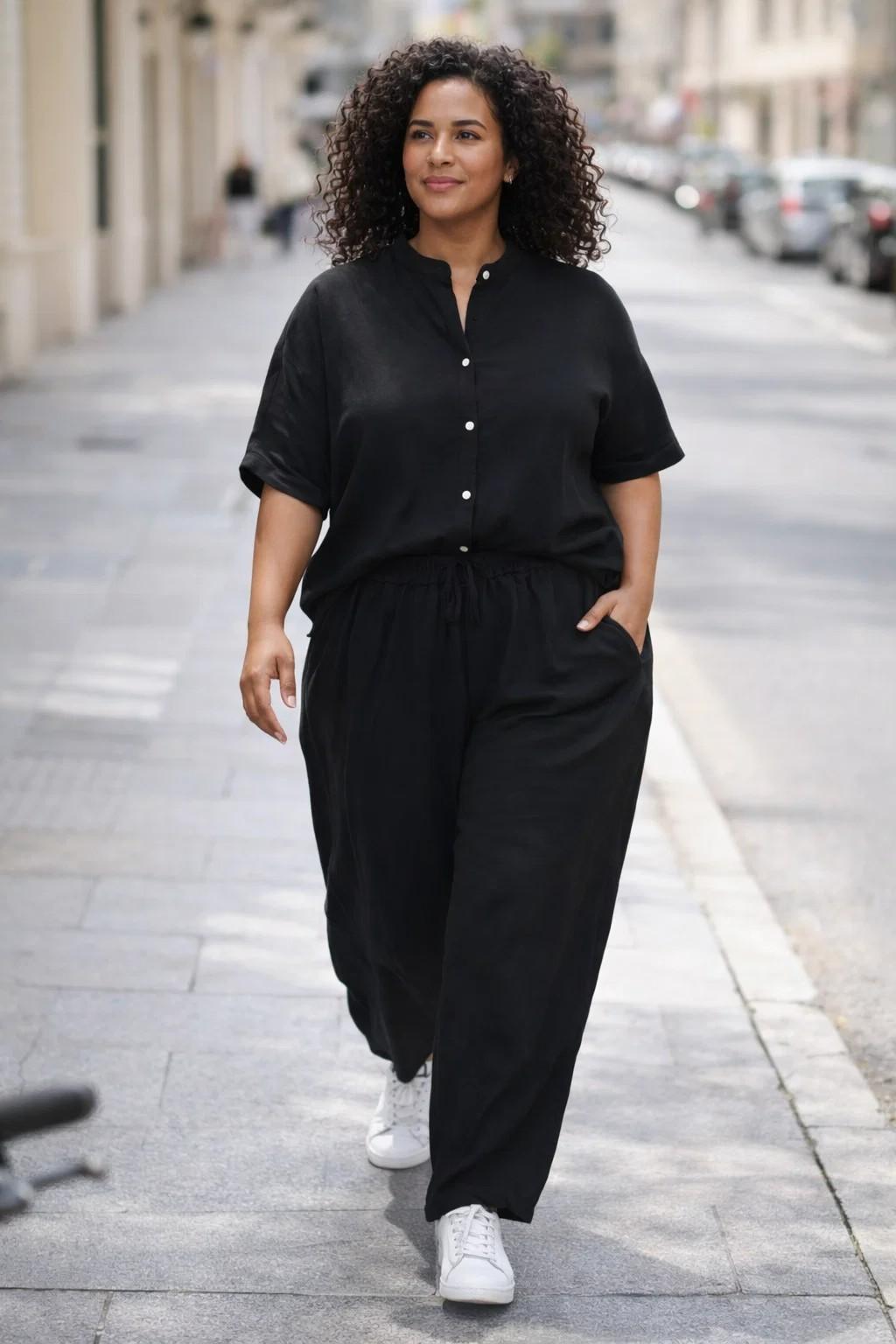 Descubre la camisa curvy fluida de manga corta, una prenda diseñada para ofrecer máxima comodidad con un estilo moderno y minimalista. Su corte amplio y ligero se adapta perfectamente a tu silueta, proporcionando libertad de movimiento y un ajuste favorecedor.