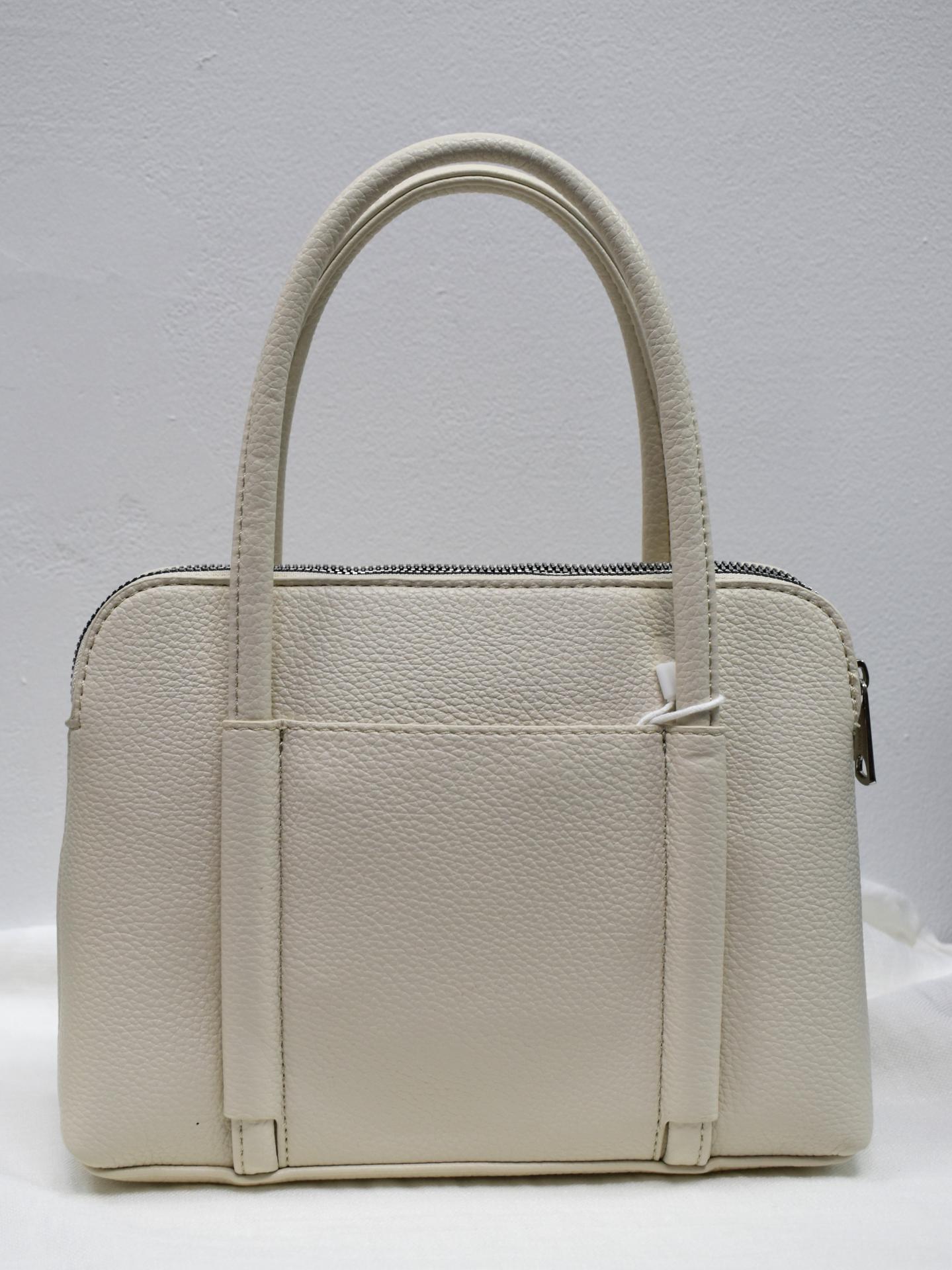 Bolso elegante mujer con asa fija, amplio y práctico. Doble cremallera y bolsillo trasero. Disponible en azul marino, negro y beige.