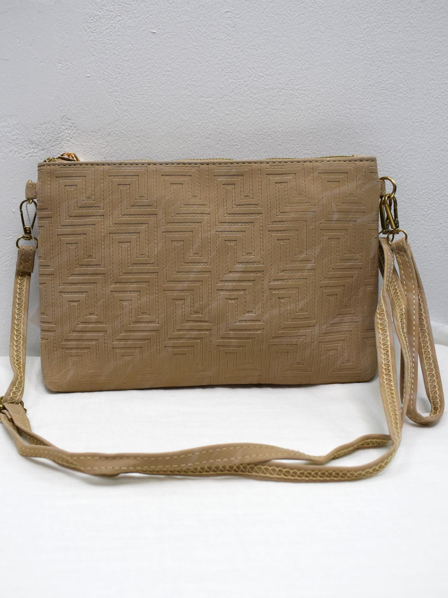Bolso mujer de mano y bandolera con diseño geométrico en relieve, cierre de cremallera y bolsillo trasero. Elegante, práctico y disponible en 4 colores.
