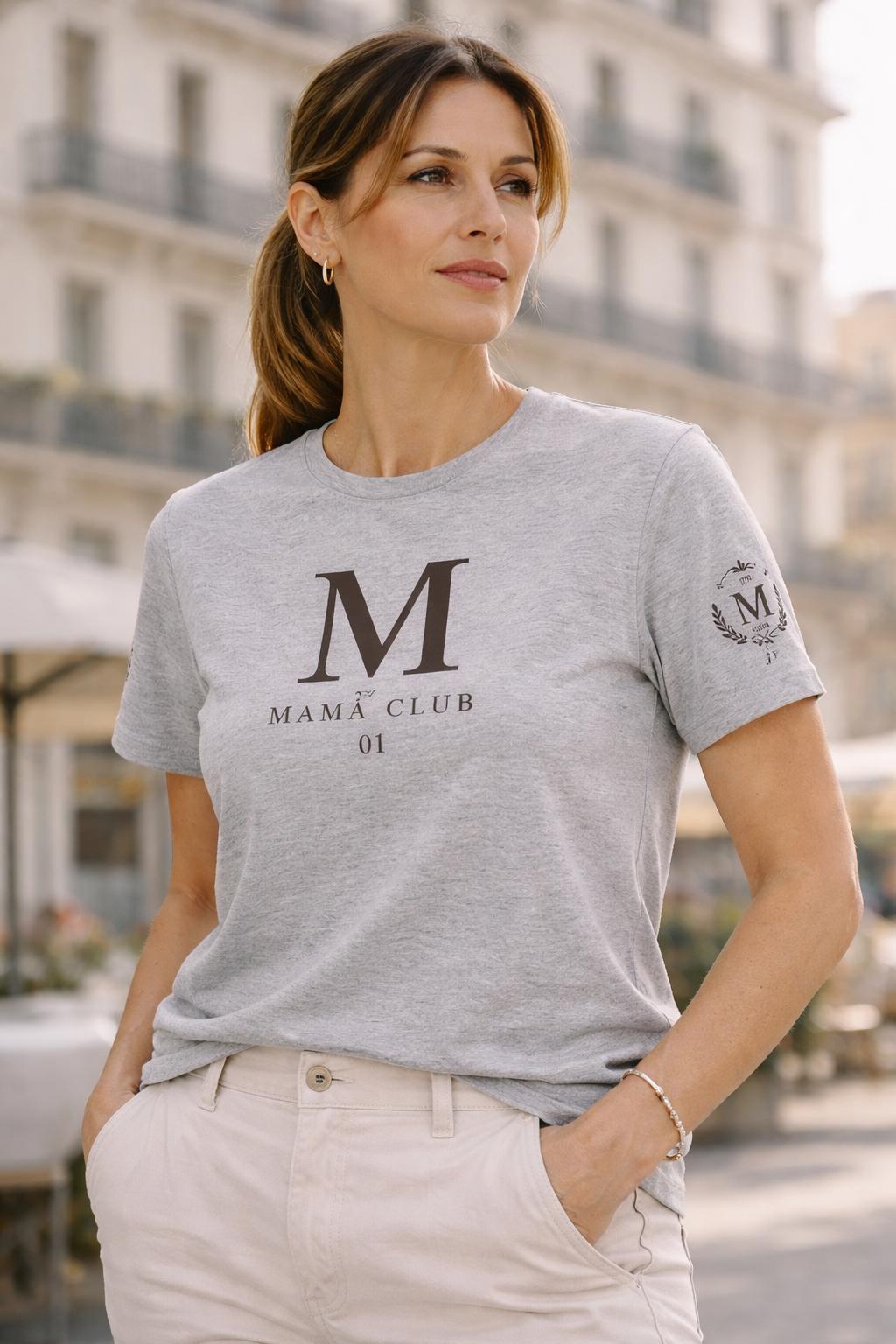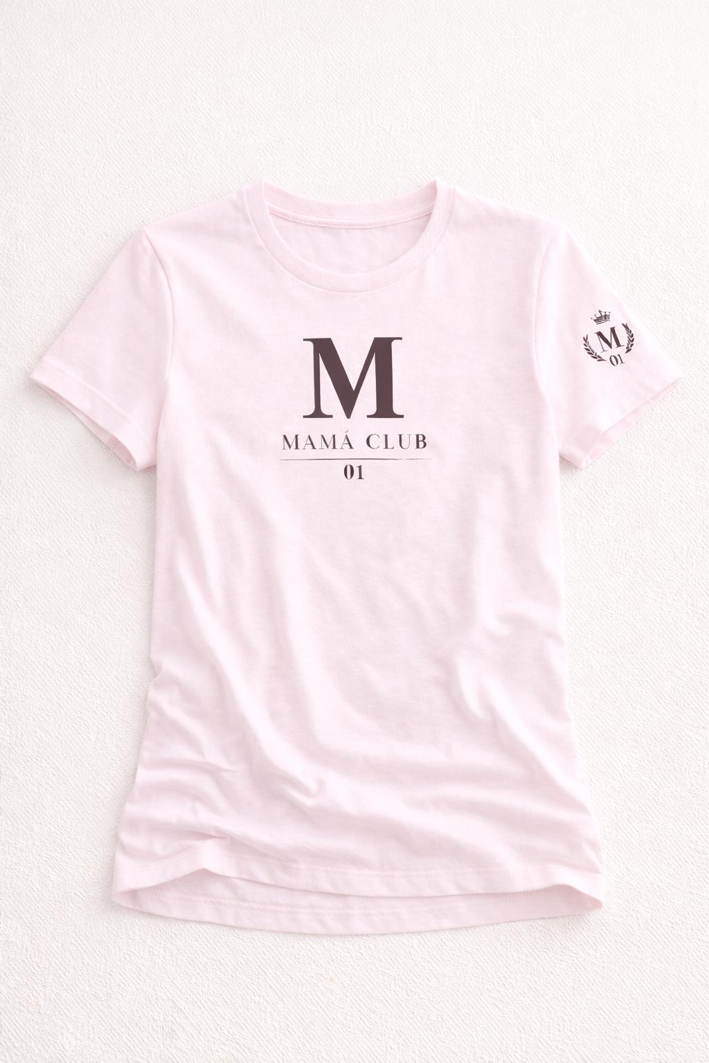 Camiseta para mamá con diseño Mamá Club 01, disponible en blanco, rosa y gris, desde la talla S hasta la XXL. Un regalo original para mamá con estilo elegante, actual y muy fácil de combinar.