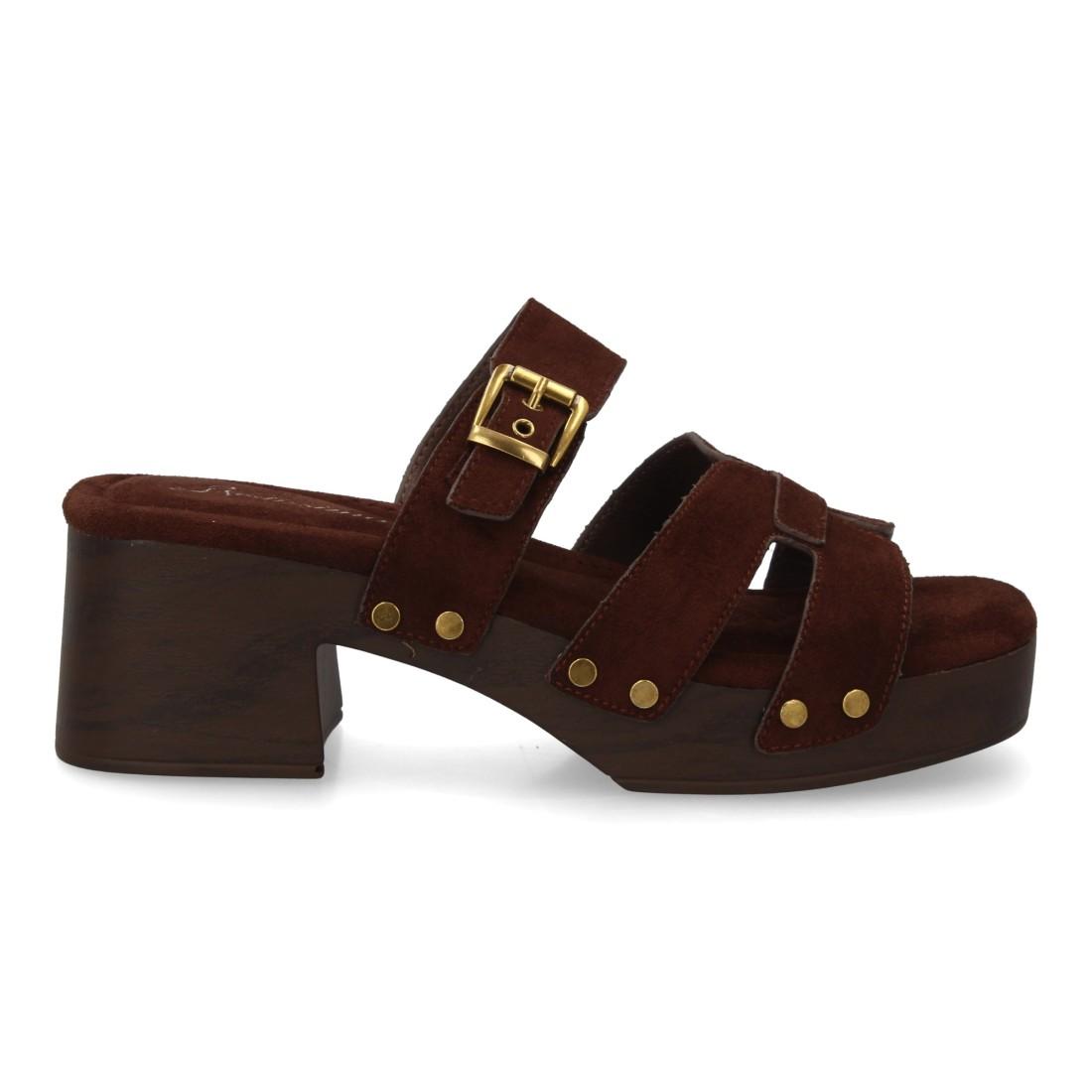 Sandalias mujer tacón medio con plataforma efecto madera, cómodas y elegantes. Diseño con tiras y hebilla ajustable. Perfectas para verano.