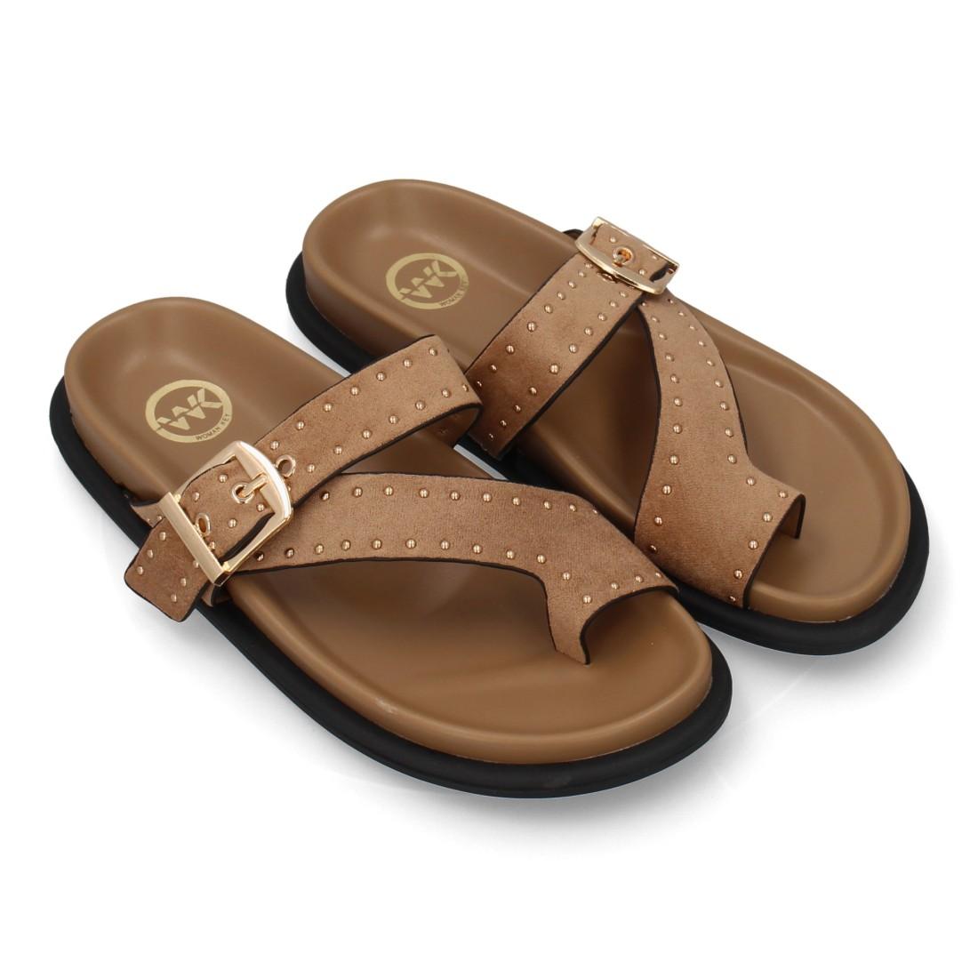 Sandalias Planas Mujer con Tachas y Diseño Cruzado