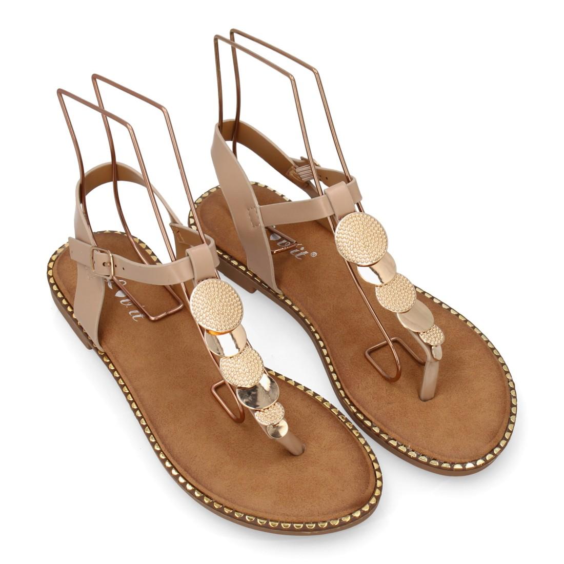 Sandalias Planas de Dedo Mujer con Detalle Dorado